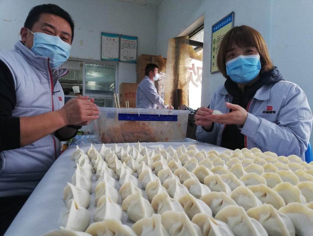 公司驻厂领导、一些干部职工紧张忙碌起来,有的擀有的包,场面温馨感人,元宝形、月牙形,不同形状的饺子整齐地排列在一起足有一万多只,不仅分担了后勤保障人员的工作压力,还用实际行动彰显着严肃活泼的工作作风和凝聚奋进的精神品质。好吃不过饺子,温暖不过集体。在这个特殊时期能吃到手工水饺令人难忘,虽然暂时不能和家人、亲友团聚,但大家相互关心、相互鼓励让每位员工感受到了大家庭的温暖,心底涌起一股股暖流。