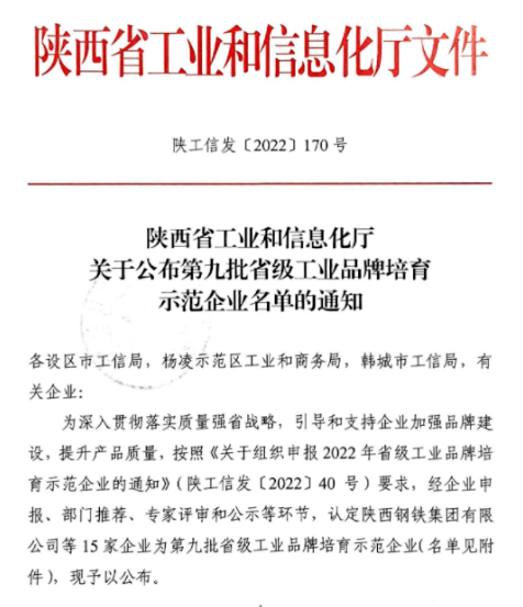 近日,陕西省工业和信息化厅公布了第九批省级工业品牌培育示范企业名单,不朽情缘股份成功入选并荣获“省级工业品牌培育示范企业”称号。