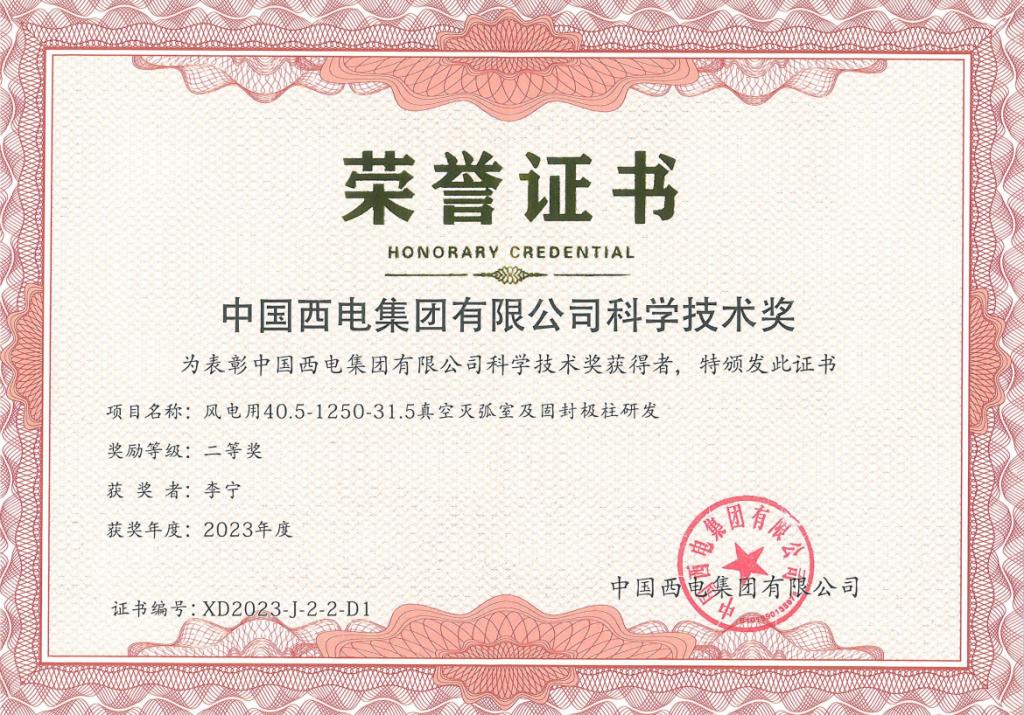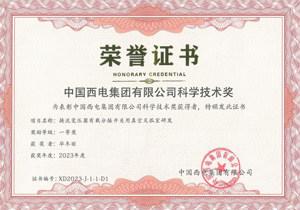 近日,不朽情缘股份《换流变压器有载分接开关用真空灭弧室研发》与《风电用40.5 kV/1250 A-31.5 kA真空灭弧室及固封极柱研发》两个技术创新项目,分别荣获2023年度中国西电集团科学技术奖“一等奖”与“二等奖”!